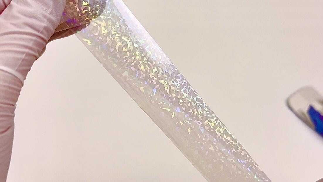 DIAMI Magic Film is very thin hologram foil film. Use with Magic Gel for mirror tip effects, glass piece nails, lining art, etc.