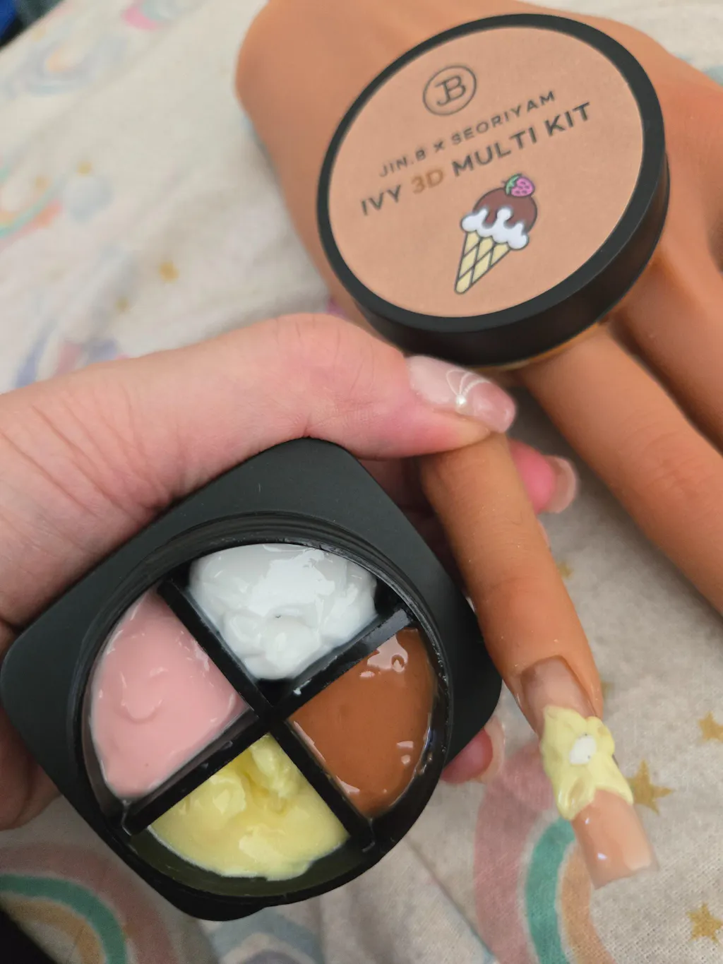 Create your own nail art and 3D charms with the Jin.B x Seoriyam Kit! This set comes with 4 jars of clay gel with each jar containing 4 colors. A total of 16 colors for you to work with!