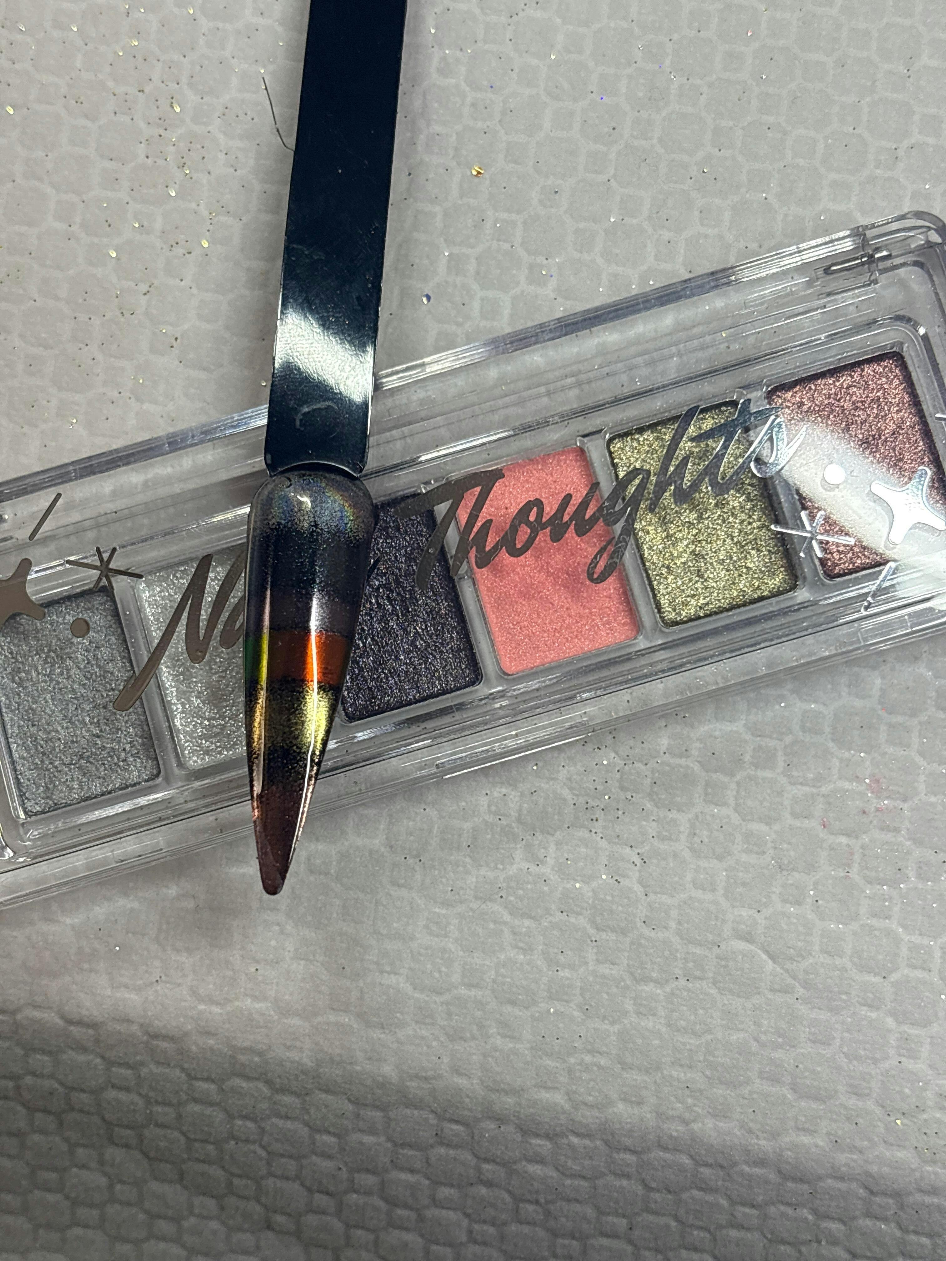 The Nail Thoughts Chrome Classics Palette consists of the 6 'classic' chrome powders that are the most used in the salon! No need to shop for multiple chrome powders when they are all here in one spot for you. The palette formula allows for less spillage and less mess.