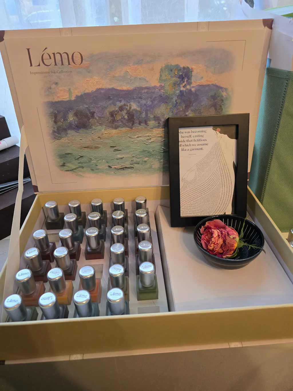 The first collection of Lémo, inspired by the colors of light, air, and temperature inspired by Monet, is The Four Seasons of the Garden.