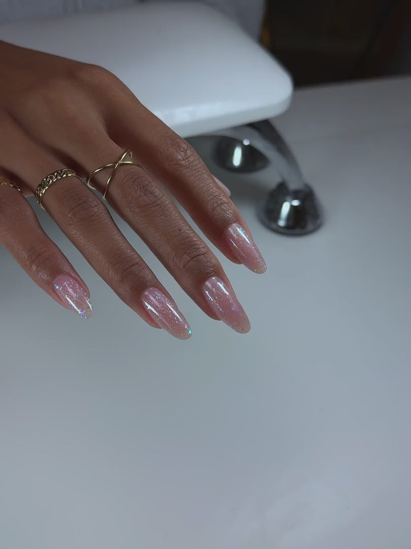 The ICE NUDE structure Building gel is a camouflage nail gel with soft shimmer particles in the form of ice cubes, which give a mystical effect of radiance and sparkle and become invisible at a certain viewing angle.