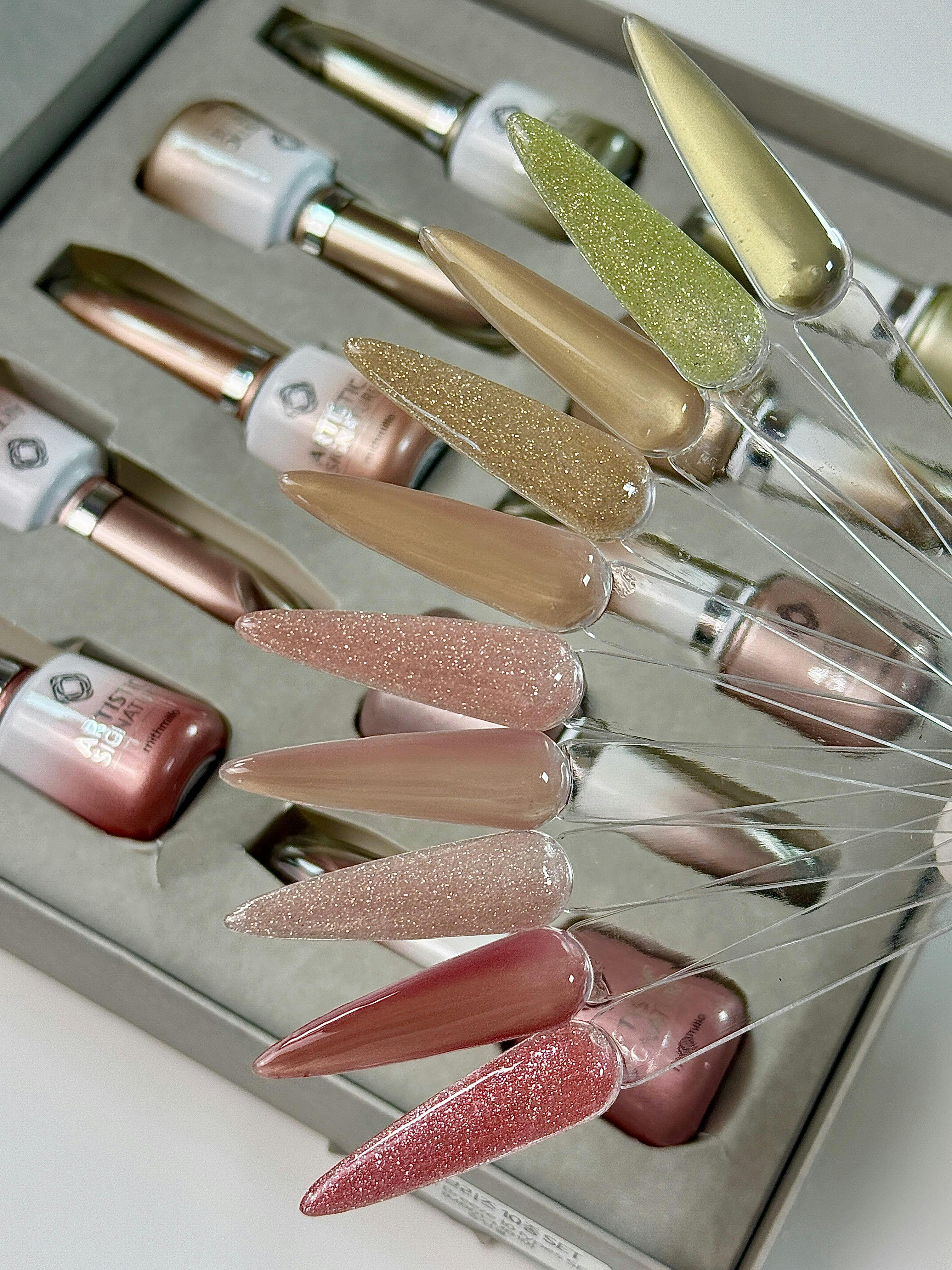 A collection of 5 magnet gels and 5 glitter gels inspired by the soft, colors of autumn.