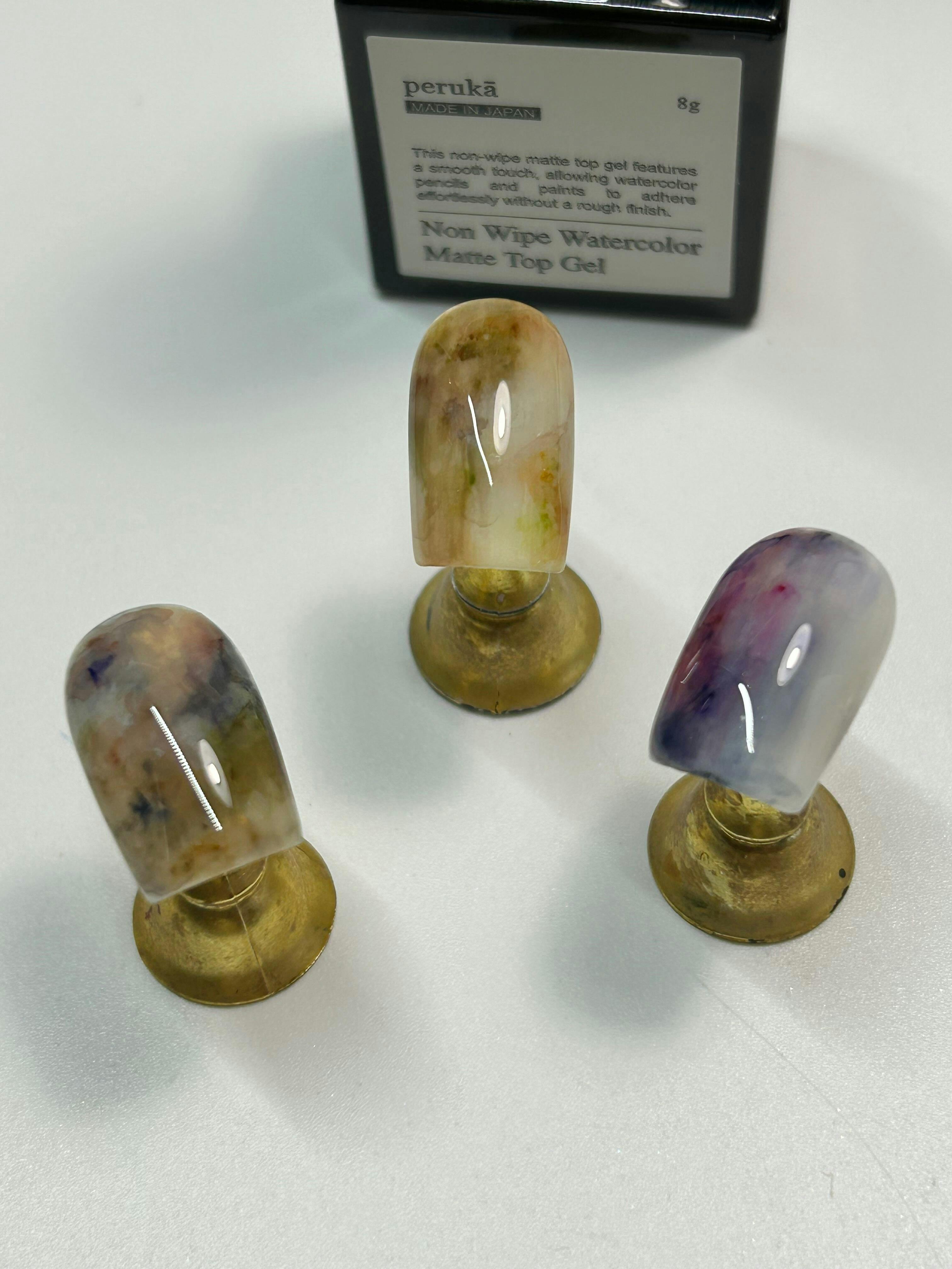 How to use: Apply a layer of top gel on to the nail after curing color gel and cure for 30-60 seconds UV/LED. For best usage, we recommend using this top gel with the perukā color gels. Using watercolors or colored pencils, you can design on top of the matte finish. Finish with a top gel and cure once dry.