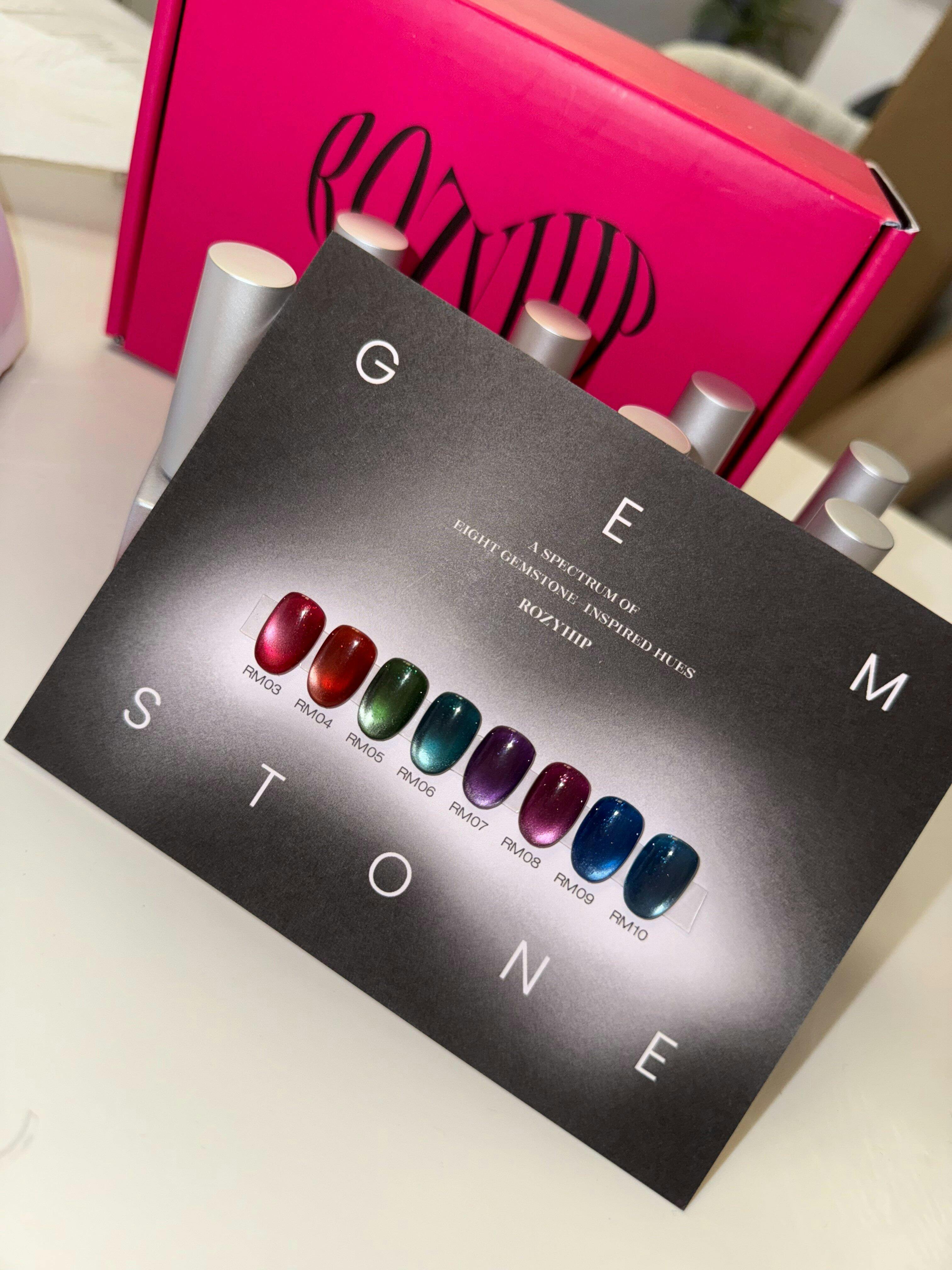 Eight jewel-tone magnetic gels in a spectrum of colours inspired by raw gemstones hewn straight from the earth. Each richly pigmented, glassy gel is filled with both a satin magnetic powder and a fine glitter in the corresponding colour for a multifaceted twinkling shift. The Gemstone collection is incredibly versatile; wear each colour in isolation or layer them over glitter and chrome to create stunning nuanced aesthetics. There’s nothing “semi” precious about this collection.