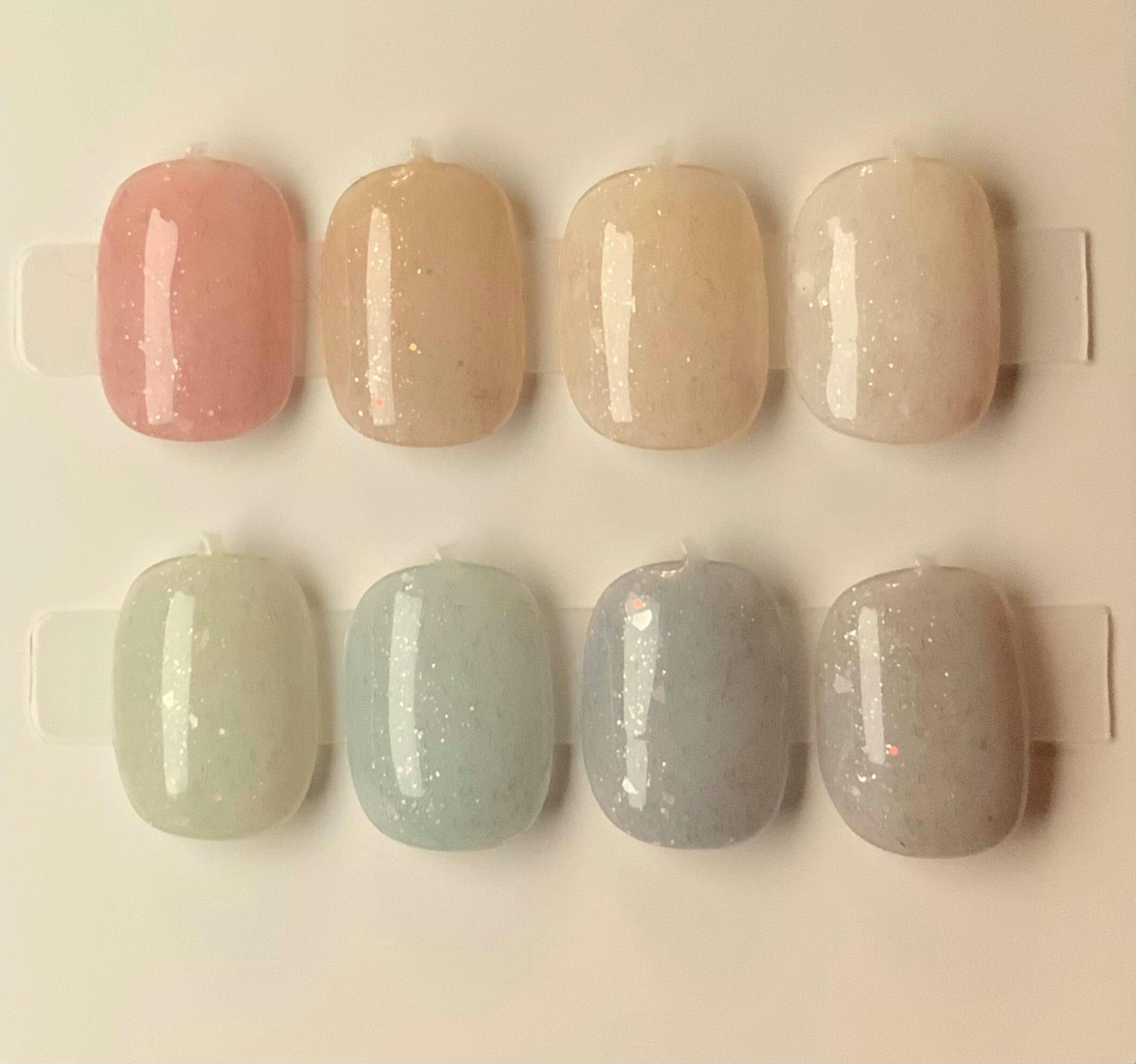 Soozza's first velvet gel polish collection features 8 muted shades. These gels have fine knit hairs embedded in the gel to imitate the look of a sweater.