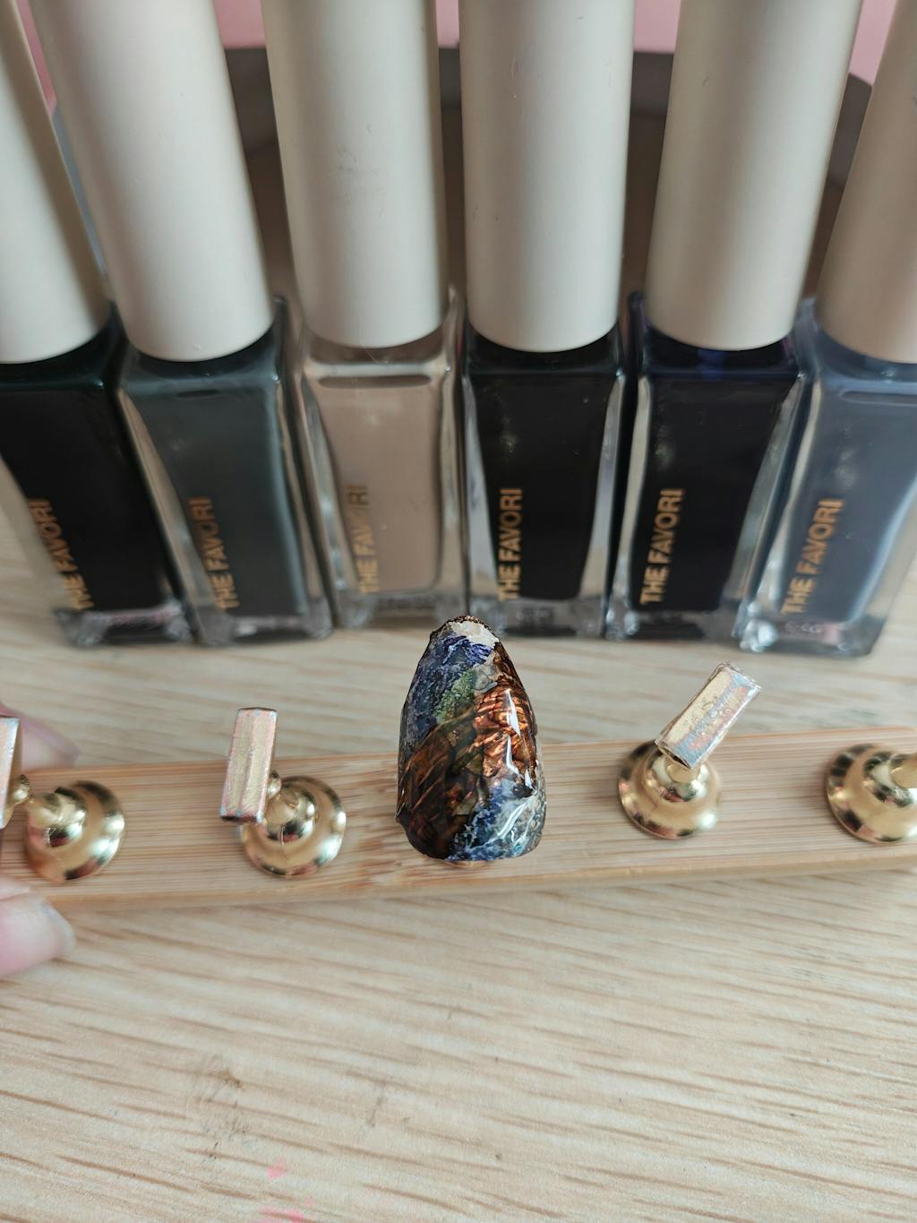 2. After curing color/base gel, apply the ink on the nail to create a design.