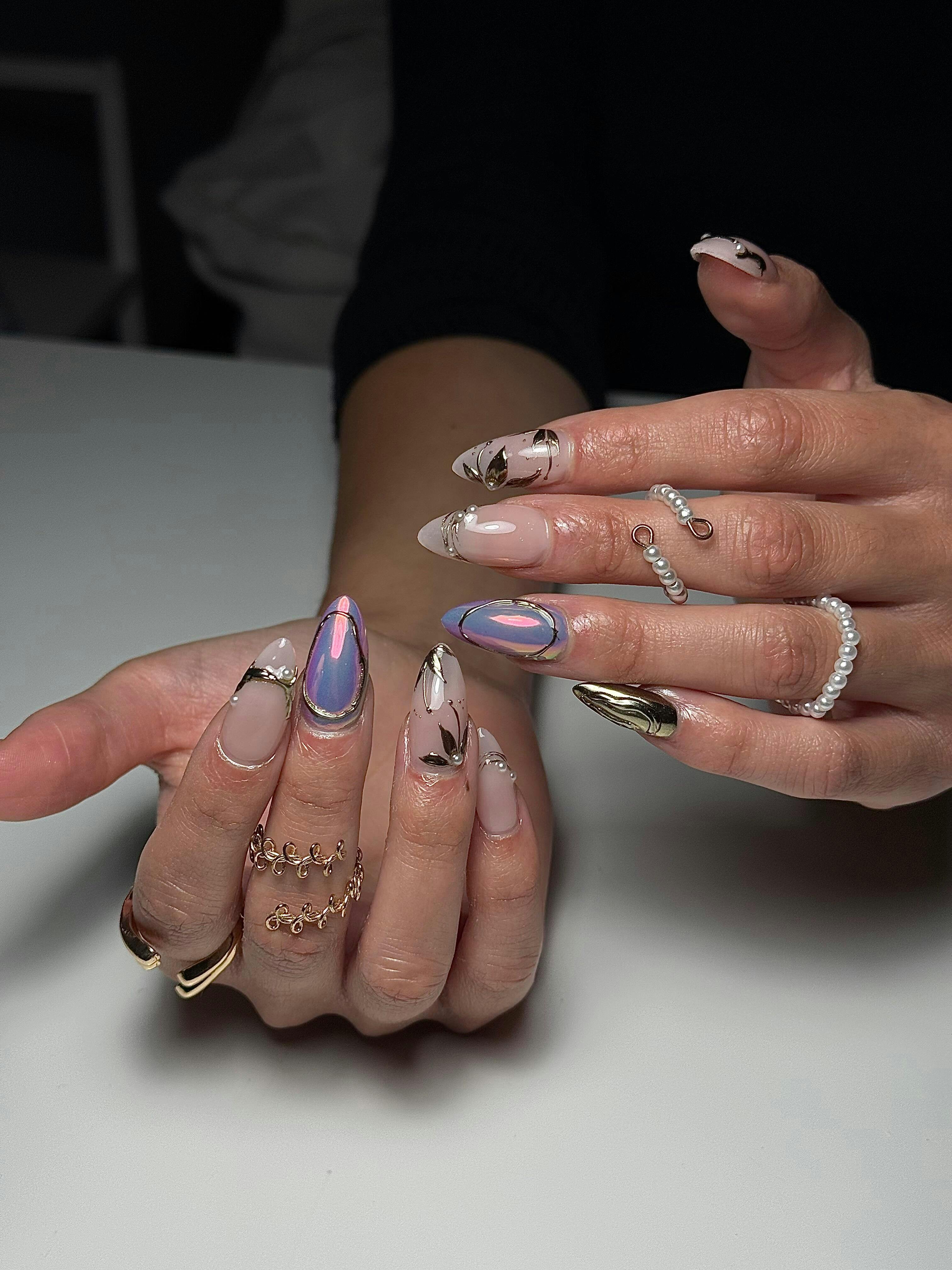 After the non-wipe gel has hardened, apply the powder to a sponge or silicone tip, rub it in, and coat it with gel before use. You can also use it in the same way by applying ungu mixing gel, hardening it, and then wiping it off. This is recommended for those who find mirror-like products peeling off easily, but it has a slightly less vinyl feel than non-wipe. For nail polish, if you let it dry until it is light to the touch, then gently apply it with your fingers to achieve a texture similar to that of applying it on top of gel. Be sure to use a top coat.
