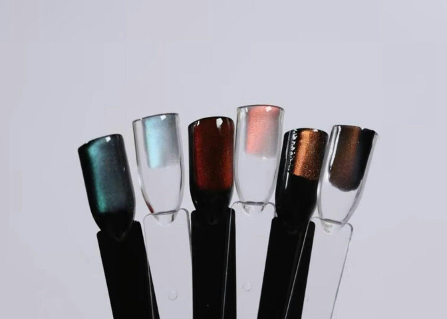 Not only clear, but also sheer colors and drop colors can be mixed to create a smooth magnetic effect. When using, try mixing the amount of powder into the clear powder much less than usual. The less you use, the smoother the result will be.