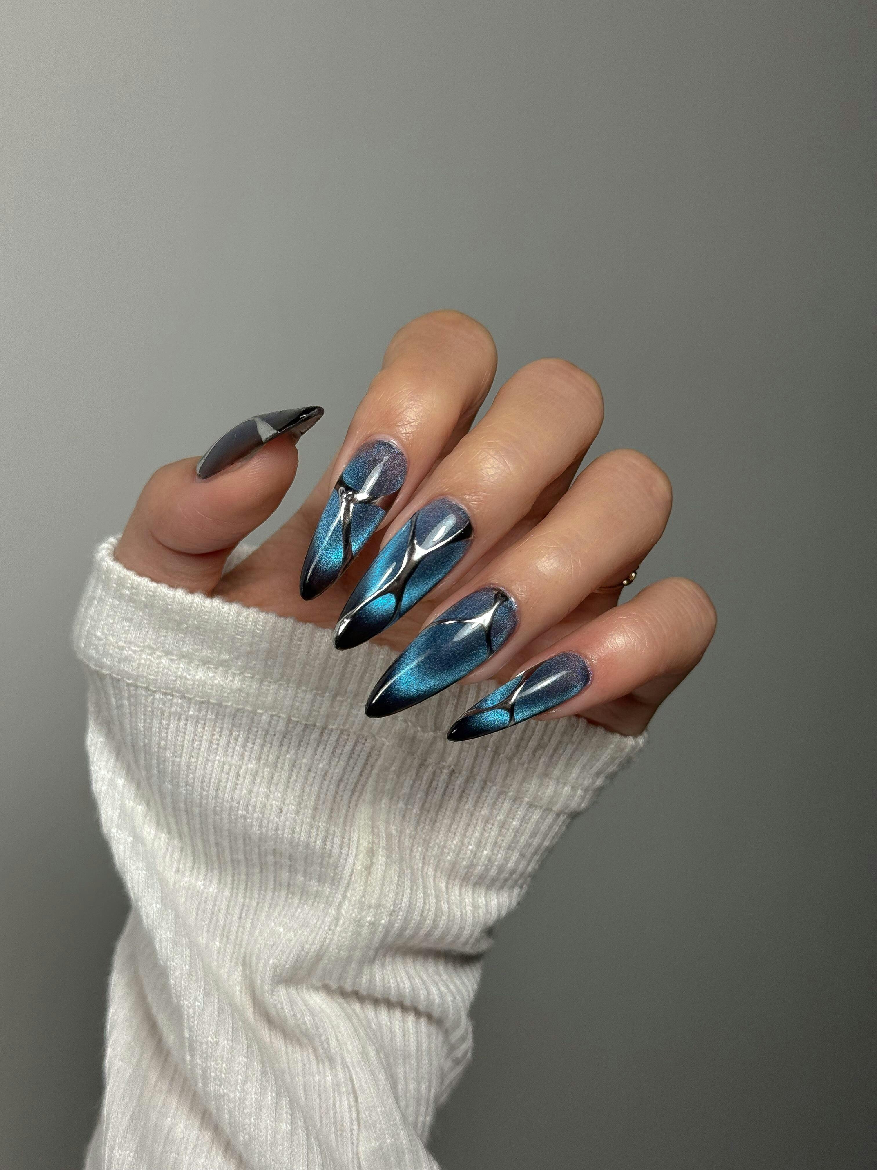 It is slightly darker than LIGHT, which is mixed with color. It has higher reflective brightness and finer particles than conventional products. This magnetic powder has a jiggly, jelly-like depth. Mix it with clear, sheer, or drop colors to create a smooth magnetic effect. We also recommend mixing it with clear and applying it on top of color.